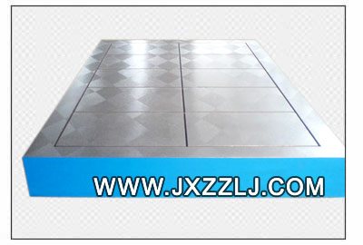 鑄鐵平板(鑄鐵平臺(tái))的包裝:鐵板包裝和木制包裝兩種形式,平臺(tái)表表用塑料膜封裝,這種包裝適于平板內(nèi)陸運(yùn)輸,并有良好的防潮、防震、防銹和防野蠻裝卸等保護(hù)平板的措施,以確保安全運(yùn)抵現(xiàn)場(chǎng)。 鑄鐵平板(鑄鐵平臺(tái))鑄鐵的運(yùn)輸:運(yùn)輸是保證平板不變形的一個(gè)重要環(huán)節(jié),所以運(yùn)輸平板時(shí)要保證不超載,不超速,不疲勞駕駛, 不在天氣惡劣的情況下運(yùn)輸。 鑄鐵平板(鑄鐵平臺(tái))安裝: 鑄鐵平板(鑄鐵平臺(tái))調(diào)試: 鑄鐵平板(鑄鐵平臺(tái))工作環(huán)境: 鑄鐵平板(鑄鐵平臺(tái))的使用注意事項(xiàng):平板在使用時(shí)要先進(jìn)行安裝調(diào)試。然后,把平板的工作面擦拭干凈,在確認(rèn)沒(méi)有問(wèn)題的情況下使用,使用過(guò)程中,要注意避免工件和平板的工作面有過(guò)激的碰撞,防止損壞平板的工作面;工件的重量更不可以超過(guò)平板的額定載荷,否則會(huì)造成工作質(zhì)量降低,還有可能損壞平板的結(jié)構(gòu),甚至?xí)斐善桨遄冃危怪畵p壞,無(wú)法使用。 平板在使用時(shí)要先進(jìn)行安裝調(diào)試。然后,把平板的工作面擦拭干凈,在確認(rèn)沒(méi)有問(wèn)題的情況下使用,使用過(guò)程中,要注意避免工件和平板的工作面有過(guò)激的碰撞,防止損壞平板的工作面;工件的重量更不可以超過(guò)平板的額定載荷,否則會(huì)造成工作質(zhì)量降低,還有可能損壞平板的結(jié)構(gòu),甚至?xí)斐善桨遄冃危怪畵p壞,無(wú)法使用。 鑄鐵平板(鑄鐵平臺(tái))的制造標(biāo)準(zhǔn):按JB/T7974-1999制造)簡(jiǎn)要描述 下載PDF文檔 鑄鐵平板(鑄鐵平臺(tái))的質(zhì)量檢測(cè): 1、鑄鐵平板(鑄鐵平臺(tái))工作表面不應(yīng)有銹跡、劃痕、碰傷及其他影響使用的外觀缺陷。2、鑄鐵平板(鑄鐵平臺(tái))工作表面不應(yīng)有砂孔、氣孔、裂紋、夾渣及縮松等鑄造缺陷。各種鑄造表面應(yīng)清除型砂、且表面平整,涂漆牢固。各棱邊應(yīng)修鈍。在精度等級(jí)低于“00”級(jí)的平板工作面上,對(duì)于直徑小于15mm的砂孔允許用相同的材料堵塞,其硬度應(yīng)低于周?chē)牧系挠捕取T诠ぷ髅嫔隙氯牟课粦?yīng)不多于四處,其相互之間的距離應(yīng)不小于80mm。 3、在鑄鐵平板(鑄鐵平臺(tái))的相對(duì)兩個(gè)側(cè)面上,應(yīng)設(shè)置有安裝手柄、吊環(huán)等吊裝設(shè)施的螺紋孔或圓柱孔。設(shè)計(jì)吊裝位置時(shí)應(yīng)考慮盡量減少因吊裝而引起的變動(dòng)。 4、根據(jù)用戶(hù)要求,在板工作面上設(shè)置螺紋孔或溝槽后,這些部位不應(yīng)出現(xiàn)高于工作面的凸起現(xiàn)象。 5、鑄鐵平板(鑄鐵平臺(tái))應(yīng)采用優(yōu)質(zhì)細(xì)顆料的灰口鑄鐵或合金鑄鐵制造。 6、鑄鐵平板(鑄鐵平臺(tái))工作面的硬度應(yīng)為HB 170-220。 7、鑄鐵平板(鑄鐵平臺(tái))工作面應(yīng)采用刮削工藝,對(duì)于“3”級(jí)平板工作面也可以采用刨削工藝,刨削工作表面的表面粗糙度按輪廓算術(shù)平均偏差Ra值應(yīng)不大于5um 8、鑄鐵平板(鑄鐵平臺(tái))應(yīng)經(jīng)過(guò)穩(wěn)定性處理和去磁。 鑄鐵平板(鑄鐵平臺(tái))平 面 度:可分實(shí)驗(yàn)室級(jí)(Reference)、校驗(yàn)級(jí)(Master)、工 具室級(jí)(Working) 三級(jí) 鑄鐵平板(鑄鐵平臺(tái))平面研磨:平臺(tái)在很早的時(shí)候,人們利用三塊平臺(tái)相互匹配以產(chǎn)生真平平面。一個(gè)熟練而 又有耐心的 磨石師傅可以不藉助任何量測(cè)儀器,而僅利用三平臺(tái)相互匹配的 方式,做多次90度之旋轉(zhuǎn), 即可產(chǎn)生令人難以相信的真平程度。 鑄鐵平板(鑄鐵平臺(tái))平面度: 1.AA級(jí):其平面度(μm)= 1+1.6D2 (D為平臺(tái)對(duì)角線長(zhǎng)或直徑),用於高度精密 之測(cè)定之用, 常用於實(shí)驗(yàn)室。 2. A級(jí):其平面度為AA級(jí)之兩倍誤差,常用於工具檢驗(yàn)室作精密量具之檢驗(yàn)之用。 3. B級(jí):其平面度為AA級(jí)之四倍誤差,常用於工具檢驗(yàn)室或在現(xiàn)場(chǎng)檢驗(yàn)量具或劃線之用。 鑄鐵平板(平臺(tái))的分類(lèi): 按照用途分: 鑄鐵平板(平臺(tái))可以分為:基礎(chǔ)平板、劃線平板、檢驗(yàn)平板、鉚焊平板、焊接平板、火工平板、鉗工平板、研磨平板、刮痧平板、壓沙平板、試驗(yàn)平板、機(jī)床工作臺(tái)(如:落地鏜床工作臺(tái))、三座標(biāo)平板、模具墊板、拼裝平板(也叫裝配平板)。 或:基礎(chǔ)平臺(tái)、劃線平臺(tái)、檢驗(yàn)平臺(tái)、鉚焊平臺(tái)、焊接平臺(tái)、火工平臺(tái)、鉗工平臺(tái)、研磨平臺(tái)、刮痧平臺(tái)、壓沙平臺(tái)、試驗(yàn)工作臺(tái)(如:振動(dòng)試驗(yàn)工作臺(tái)簡(jiǎn)稱(chēng)振動(dòng)試驗(yàn)臺(tái))、機(jī)床工作臺(tái)(如:落地鏜床工作臺(tái))、三座標(biāo)平臺(tái)、模具工作臺(tái)、拼裝平臺(tái)(也叫裝配平臺(tái))。 按照形狀分類(lèi):普通平板(普通平臺(tái))、圓形平板(也叫圓平板/圓平臺(tái)/圓形平臺(tái))、方平板(方平臺(tái)) 按照表面工藝可以分為:平面平板和T型槽平板(T型槽平臺(tái))